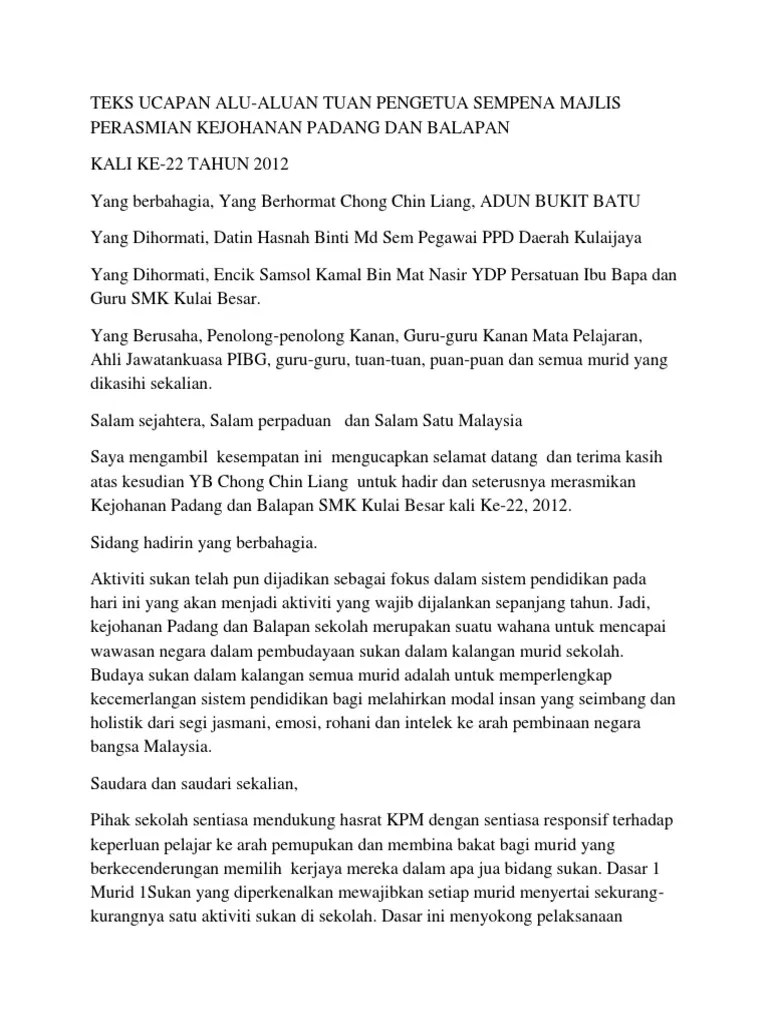 Yusnita bt abd rahman selaku pengerusi kelab staf. Sorry, this entry is only available in bahasa melayu. Teks ucapan majlis pelancaran transformasi pendidikan vokasional. Majlis pada pagi ini diteruskan dengan ucapan wakil pelajar, untuk itu dipersilakan nama pelajar selaku ketua pengawas untuk menyampaikan. Wong,pengurus besar, lppb,di shangri la's tanjung aru resortpada 2hb mei 2008 (jumaat)jam.