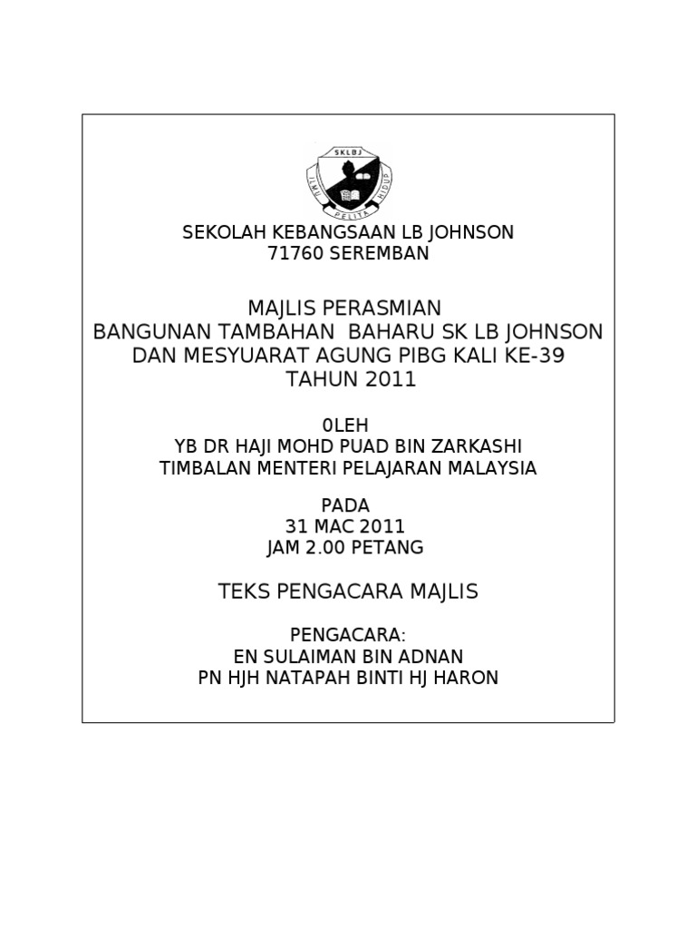 Related : Teks Ucapan Majlis Perasmian / Seterusnya dipersilakan nama guru gpk1 untuk membacakan perutusan menteri pelajaran malaysia..